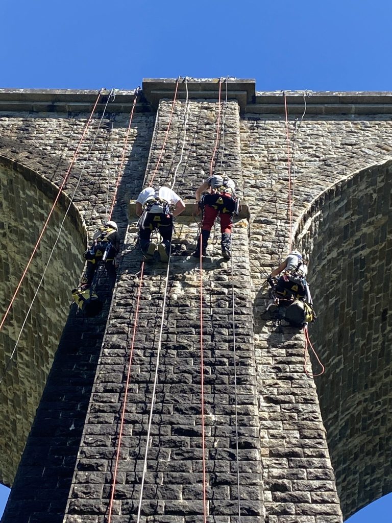 - Ouvrage d’art en pierre à relief avec des arêtes vives (gestion des frottements des cordes).